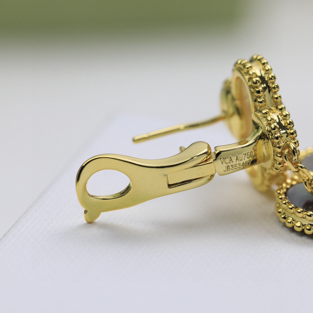 18K Magic Alhambra Three Malachite Motifs Clover Earrings